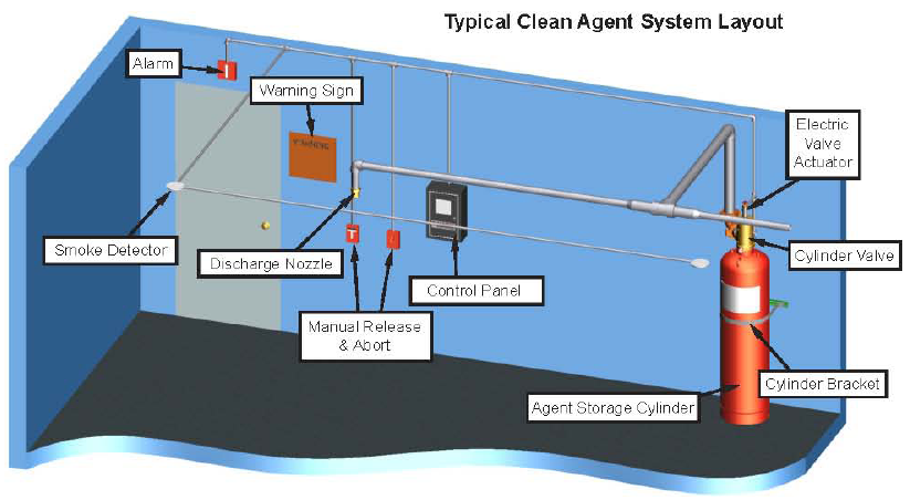 FM-200® is a colourless, liquefied compressed gas. It is stored as a liquid and dispensed into the hazard as a colourless, eclectically non-conductive vapour that is clear and does not obscure vision. It leaves no residue and has acceptable toxicity for use in occupied spaces at design concentration. FM-200® does not displace oxygen and therefore is safer for use in occupied spaces without fear of oxygen deprivation.