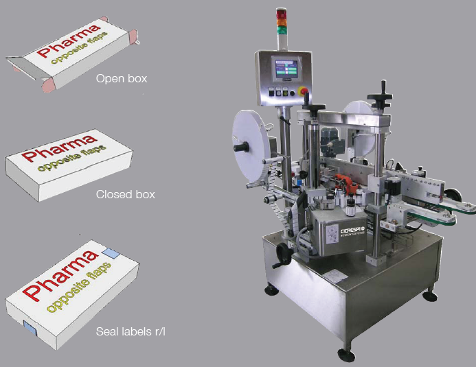 C-Sealer a line for the dynamic application of tamper evident/security seal labels on pharmaceutical boxes.