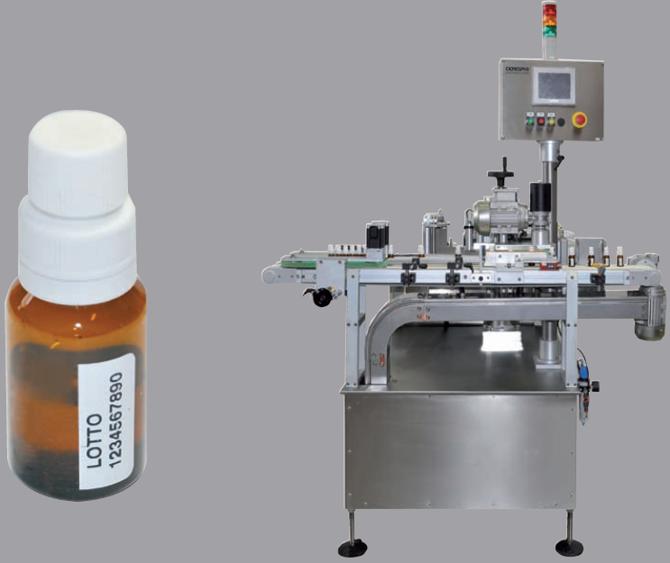 Vials Labeling the system applies partial or total wraparound labels on different kinds of vials. It is completed with thermal transfer printer, check of printing and presence of label.